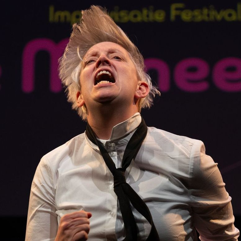 Man man... Jeroen. Een prachtige man met passie! Niet voor niks Meneertje Rood. Passie voor impro, passie voor het spelen van rondborstige vrouwen met duckfaces. En ondanks dit gebrekkige gevoel voor humor, heb je een echte vriend aan hem. Een redder in Rood tijdens de typische Meneertjes-chaos op het podium!